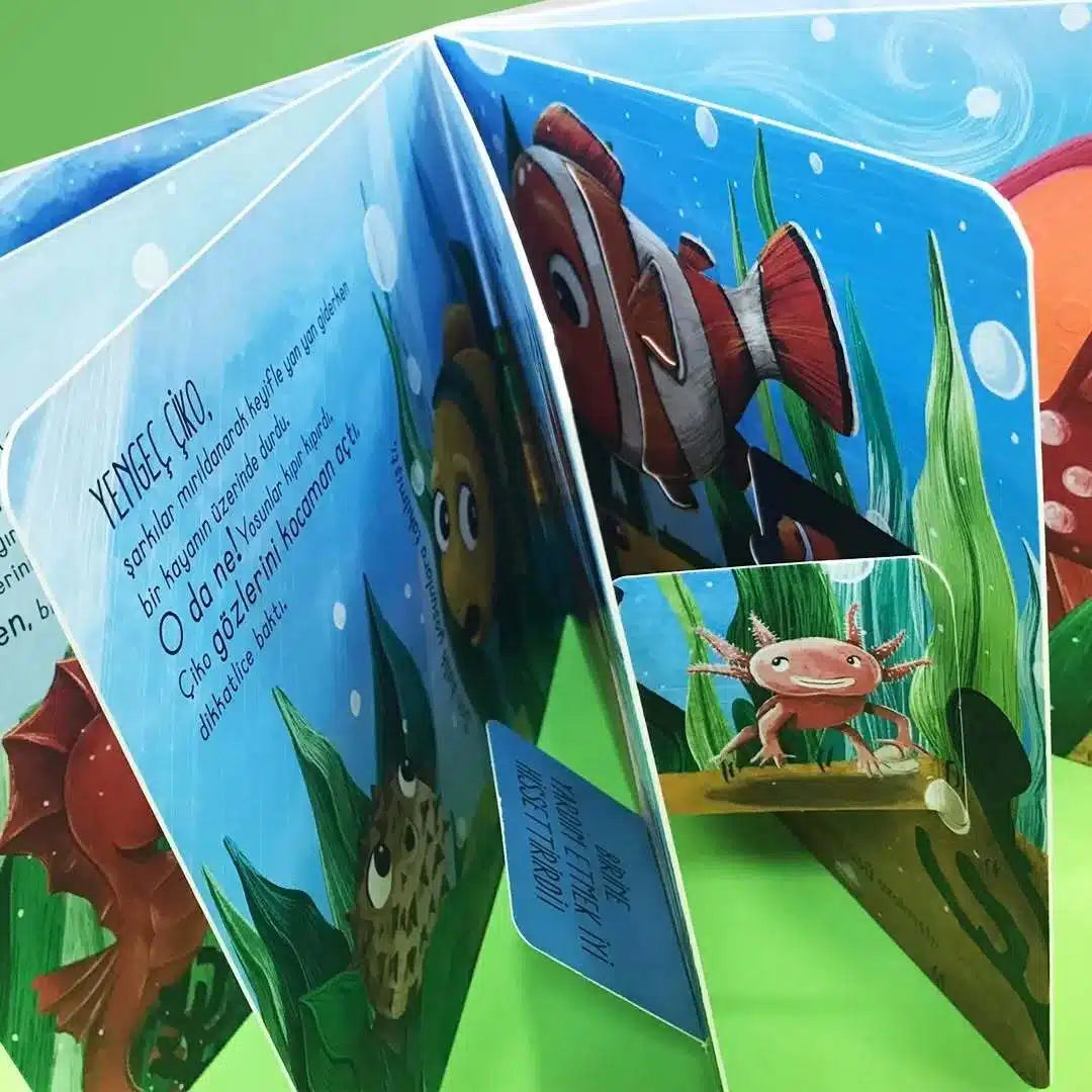 Okyanusu çok seven bir deniz kaplumbağası, uykucu bir paylaço balığı,oyun oynamayı seven bir yunus ve diğer okyanus dostlarımız bu kitapta hayat buluyor.