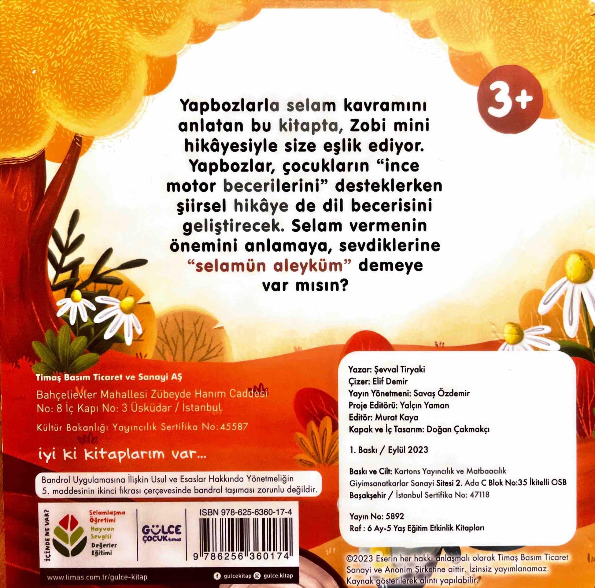 Yapbozlarla "Selamlaşmayı" öğreten bu kitapta, Zebra mini hikâyesiyle çocukların bireylerini anlatıyor. Yapbozları yaparken "ince motor özelliklerinin" gelişimi desteklenirken hikâye ve şiirle dil özelliklerinin gelişimi destekleniyor. Minik okurların keyifle tekrar edecekleri bu kitap çok önemli sözler söylüyor. Gelin kulak kabartalım.