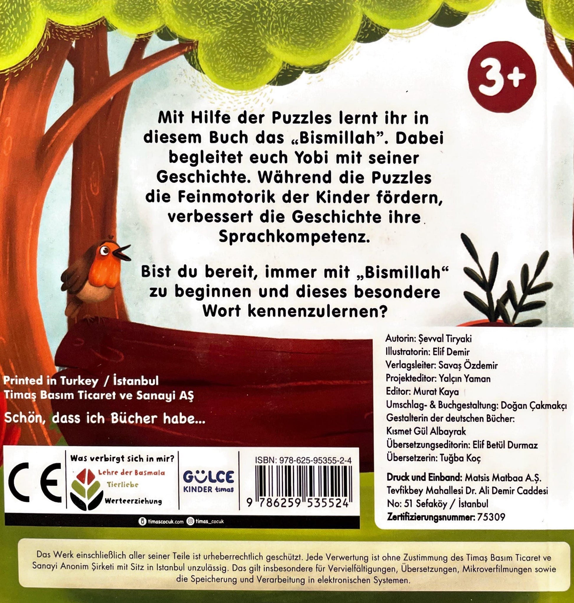 Mit Hilfe der Puzzles lernt ihr in diesem Buch das „Bismillah". Dabei begleitet euch Yobi mit seiner Geschichte. Während die Puzzles die Feinmotorik der Kinder fördern, verbessert die Geschichte ihre Sprachkompetenz.